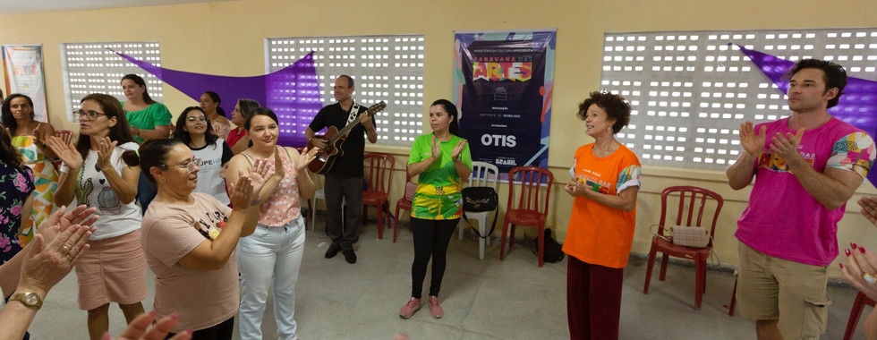 Na Caravana das Artes o aprendizado está por toda parte. Enquanto as crianças entram em contato com instrumentos musicais, produzindo música e dançando, os professores estão na sala de aula, repensando o uso da arte na sala de aula. Aprendendo através da metodologia Viva com Arte a usar a arte ao lado das outros disciplinas, principalmente como elemento potencializador do aprendizado. @ceumar_cantora esteve presente nesta formação, ensinando e compartilhando sua visão sobre a música e a arte, ou melhor: Sobre a arte de fazer música.